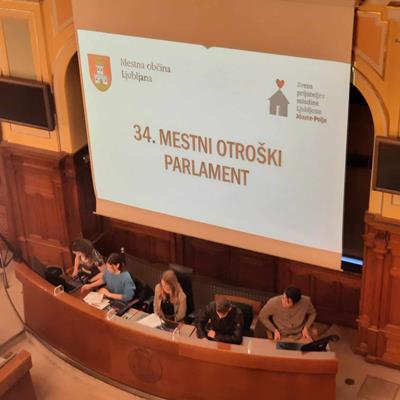 Mladi parlamentarci so v Veliki sejni dvorani, kjer običajno zaseda mestni svet, predstavljali zmagovalne akcije s 34. Območnih otroških parlamentov.