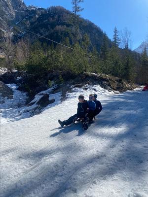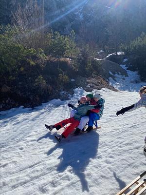 Nepopisna lepota, toplo pomladansko sonce in uživanje na snegu je zaznamovalo zadnji zimski športni dan učencev petih razredov v Planici. V dolino pod Poncami smo se odpravili v četrtek, 14. 3. 2024. Ko se je ena skupina učencev urila v teku na smučeh, se je druga skupina podala na sankaško progo in po dveh urah so vsi skupaj zasluženo pojedli malico in zamenjali aktivnosti.
