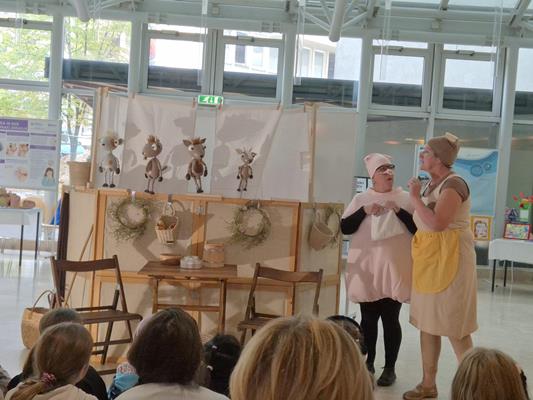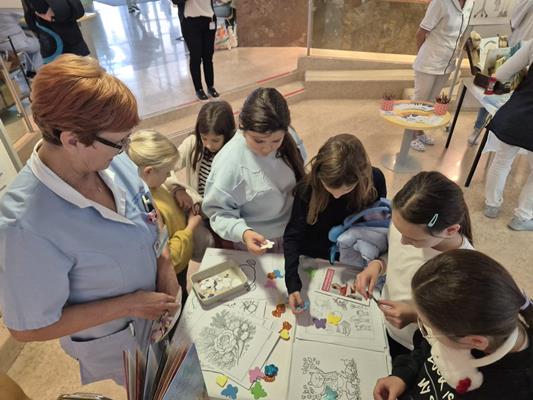 Tedna otroka potekal v avli Pediatrične klinike v Ljubljani. Zdravstveni delavci so skupaj s številnimi sodelujočimi pripravili pester in poučen program, namenjen ozaveščanju otrok o pomenu zdravega življenjskega sloga. Učenci so z navdušenjem obiskovali stojnice, kjer so se skozi igro in interaktivne vsebine učili o pomenu gibanja, zdrave prehrane in skrbi za svoje telo. Na modelu ušesa so spoznali, kako poteka zaznavanje zvoka. Veliko veselja so jim prinesla tudi simbolična darilca, kot so prstančki, pobarvanke in svinčniki. Na stojnicah so podarili tudi knjige za šolsko knjižnico: Nežka se cepi in Nadeni si masko.