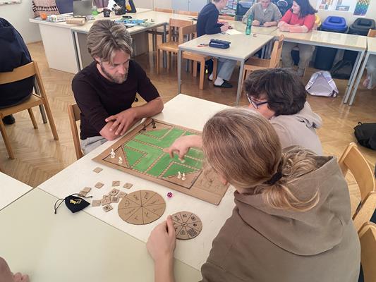 V sredo, 5. novembra 2025, se nam je pri izbirnem predmetu likovno snovanje 1, 2 in 3 pridružil g. Primož Černelč, poklicni izdelovalec namiznih iger. Učencem je predstavil celoten proces nastajanja namizne igre – od začetne ideje, načrtovanja in izdelave do testiranja in končne prodaje.