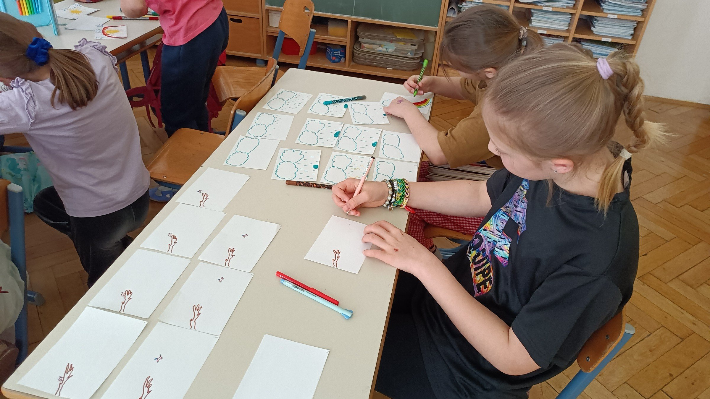 V nadaljevanju smo prisluhnili krajšemu teoretičnemu delu, kjer so učenci spoznali, kaj je animirani film, katere tehnike poznamo in kako nastane gibanje iz posameznih sličic. Ugotovili smo tudi, koliko sličic potrebujemo za eno sekundo animacije ter kako jih pravilno pripravimo in posnamemo. Posebno pozornost smo namenili listni animaciji, ki je učencem zelo blizu in jo lahko ustvarjajo tudi sami.