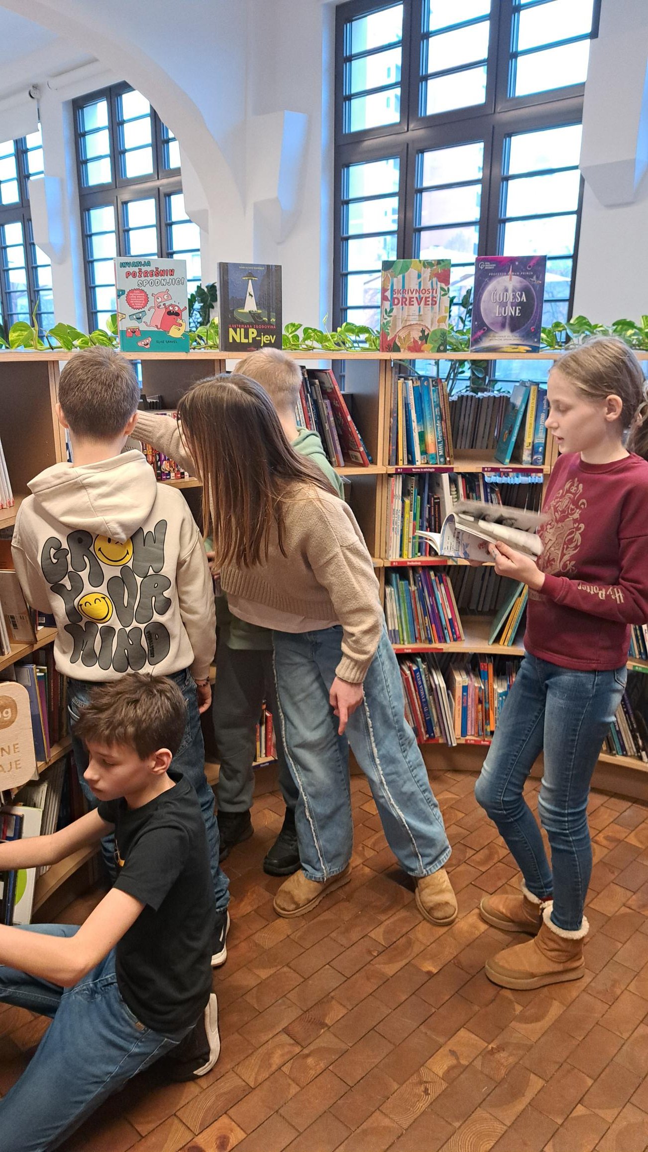 Po dveh šolskih urah smo se vrnili v šolo, odločeni, da se še vrnemo in pokukamo med knjižne police, kjer lahko vedno najdemo kaj zanimivega.