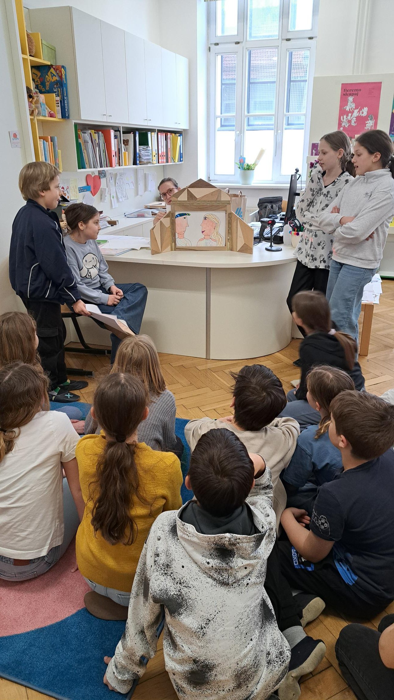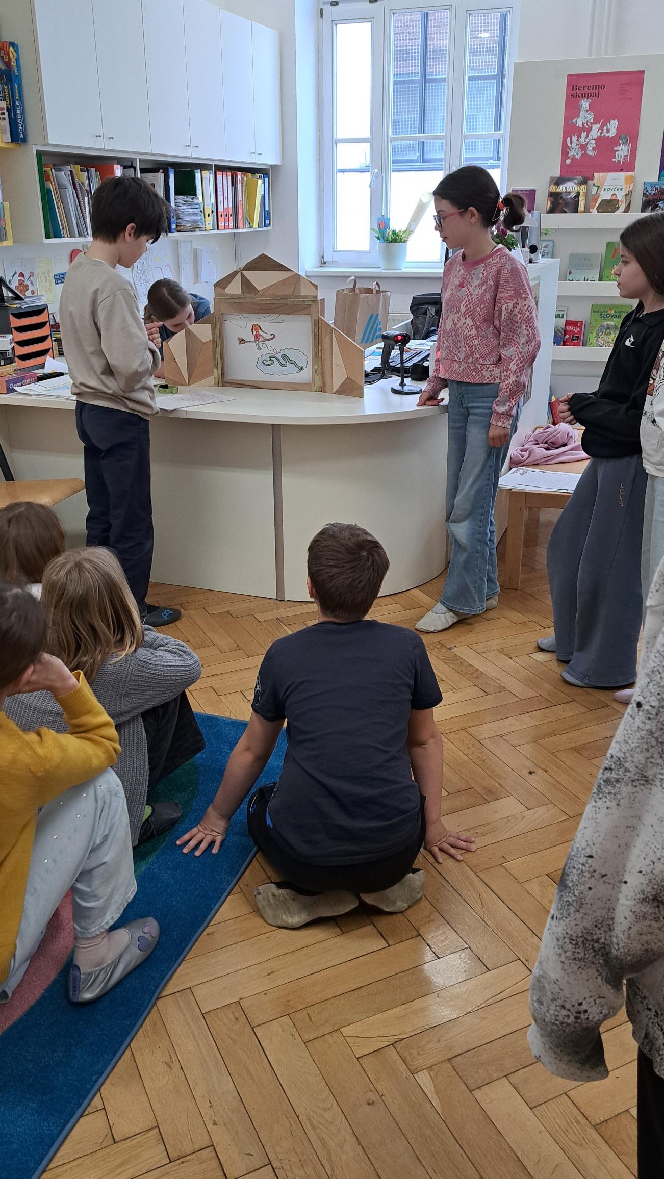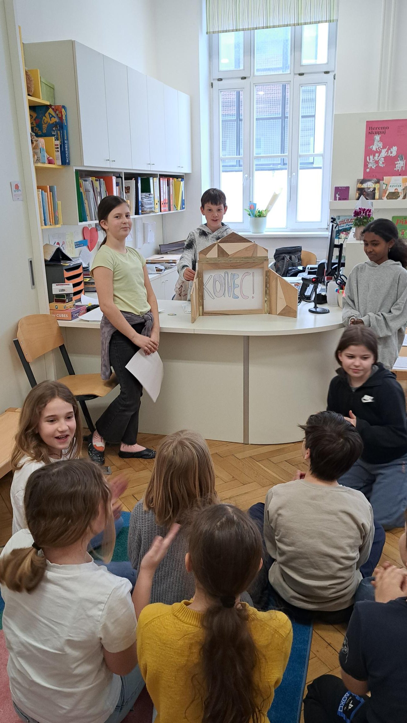 Ob koncu so pogumni ustvarjalci stopili pred občinstvo in svoje zgodbe predstavili ob kamišibaju. Dokazali so, da imajo spretne roke, bujno domišljijo, predvsem pa, da so prijazni in znajo sodelovati. In kdo ve – morda se med njimi skriva tudi kakšen bodoči pravljičar.