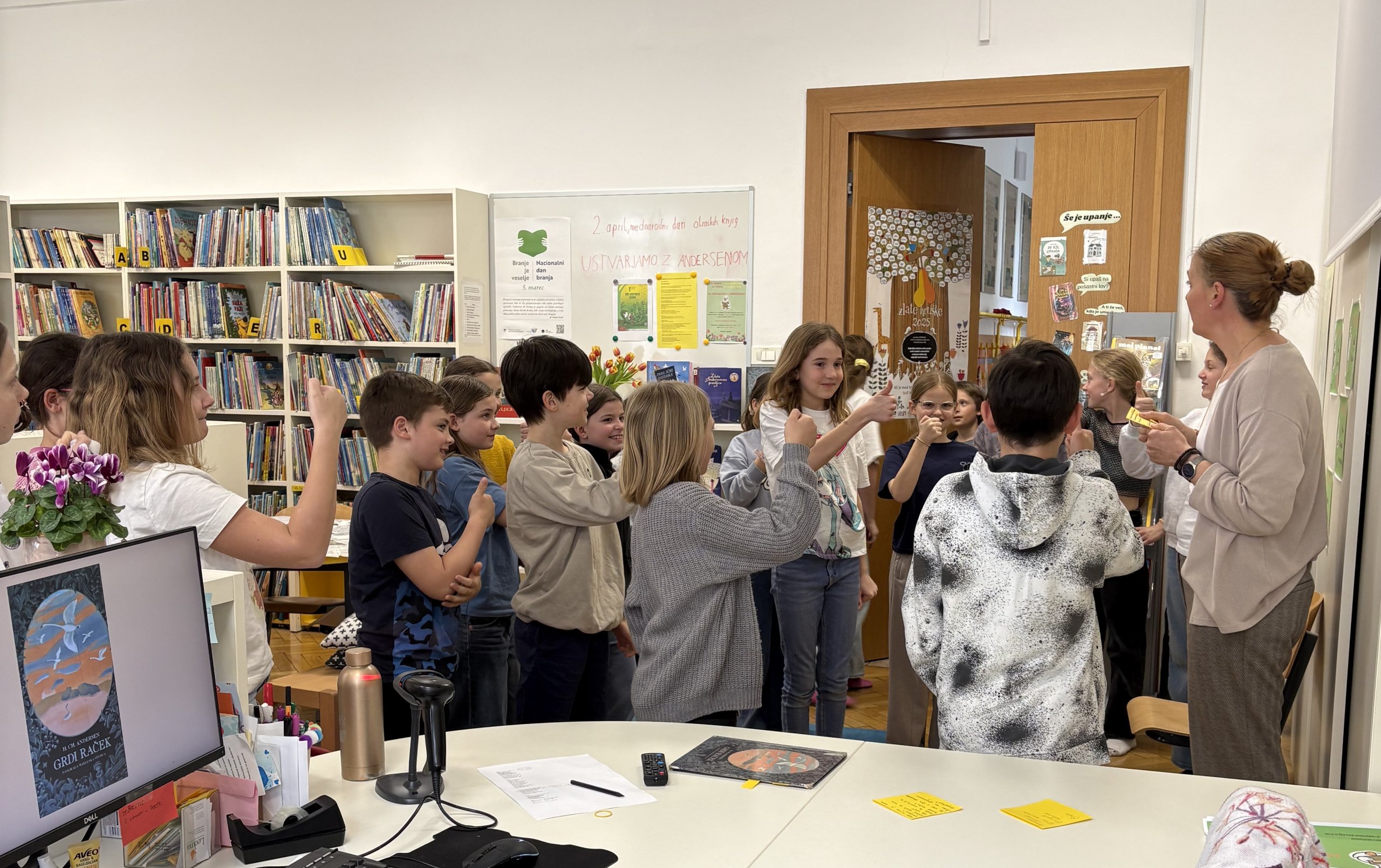 2. aprila 2026, na rojstni dan znamenitega pravljičarja Hansa Christiana Andersena in ob mednarodnem dnevu knjig za otroke, smo na OŠ Ledina pripravili prav poseben dogodek. V šolski knjižnici je za učence 4. in 5. razredov, ki so uspešno zaključili bralno značko, potekalo zabavno-ustvarjalno druženje z naslovom Ustvarjamo z Andersenom.