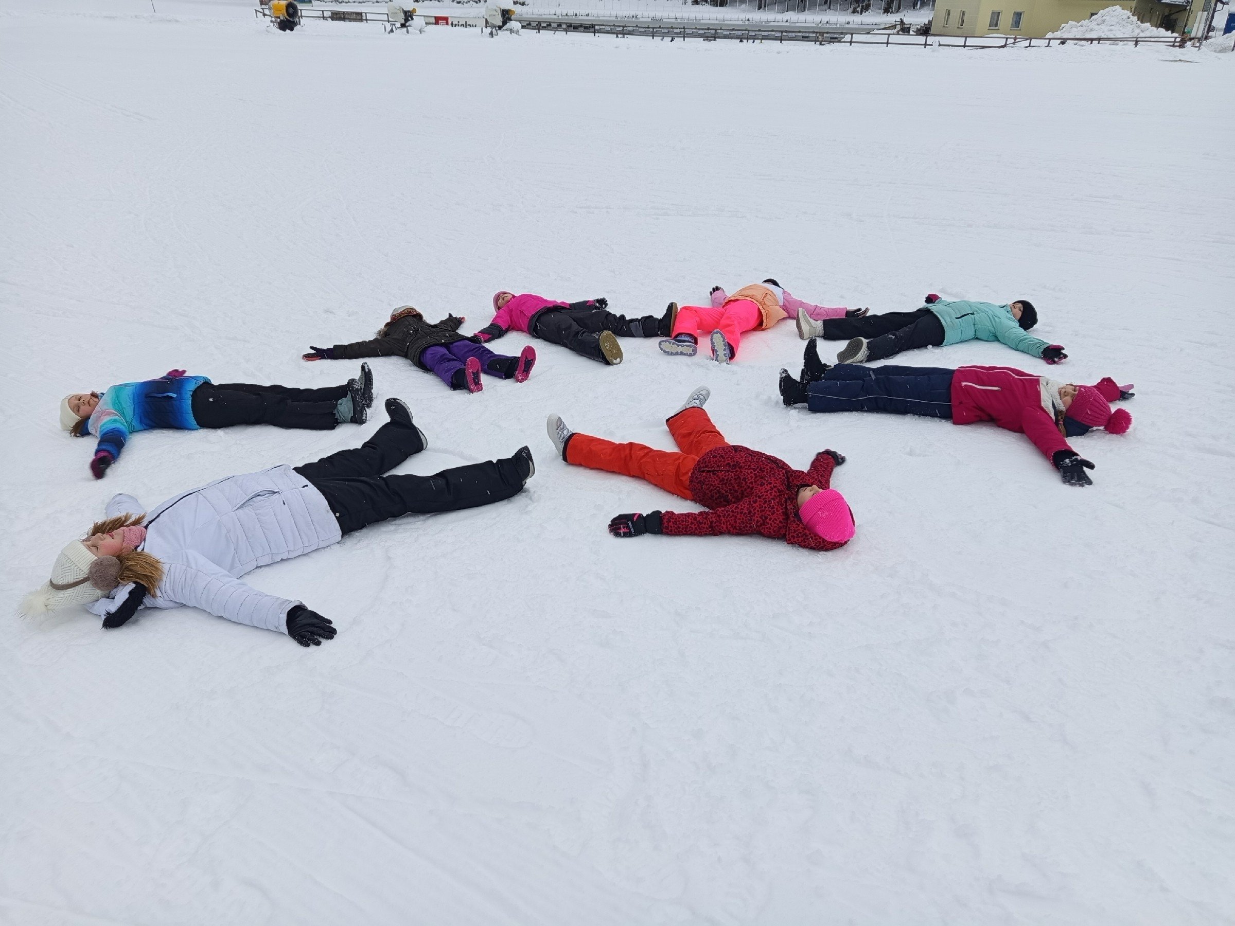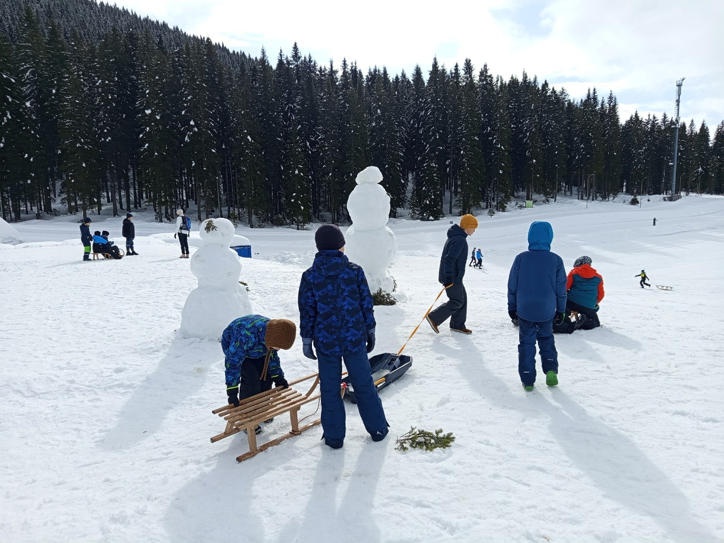 Dan smo preživeli športno in razigrano. Tekli smo na smučeh, se sankali ter gradili igluje. Uživali smo na snegu in svežem zraku, naša lica pa so božale drobne snežinke. Za trenutek so nas razveselili tudi sončni žarki.